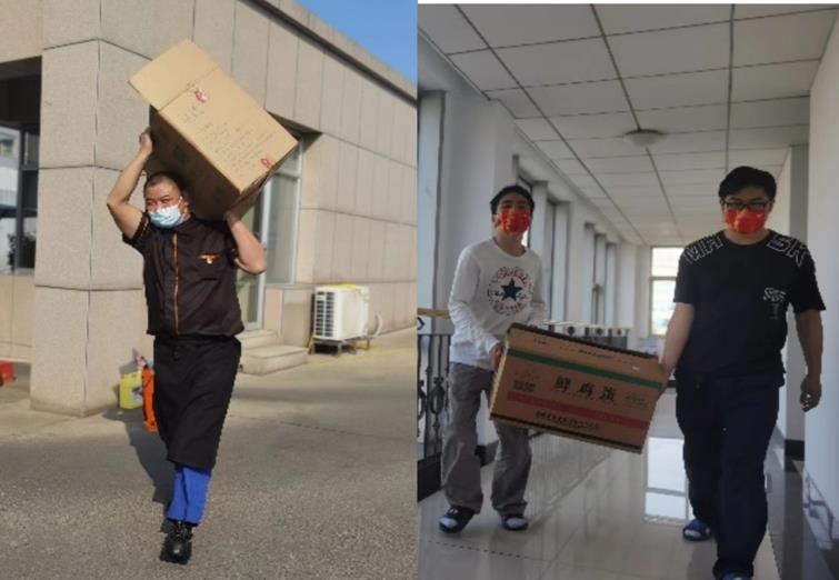 疫情防控下,供應(yīng)商的送貨車輛無法進(jìn)入園區(qū),只能將預(yù)定貨物放至門崗,需食堂工作人員自行推車到門崗提取物資,物資轉(zhuǎn)運(yùn)車緊缺,只能靠人力進(jìn)行搬運(yùn)。有人說,“疫情當(dāng)前,我們也想出一份力,這是工作,也是心意。相信大家團(tuán)結(jié)一致,一定可以打贏這場疫情防控戰(zhàn)?!笔赝嘀部藭r艱成為了特殊時期大家的共同信念。