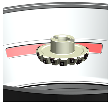 Tool selection principles: high-temperature alloy millingshould focus on machining efficiency and cost. FMA01/FMA02 series mounted SEETinsert, high-feed milling series, are both can be applied in high-temperaturealloy machining. Selecting proper tool according to boss profile diameter, YBG205is recommended grade.